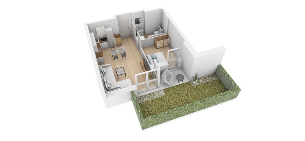 Mieszkanie M-03 to 38.55 m² możliwości na parterze – idealne dla tych, którzy cenią wygodę i bezpośredni kontakt z zielenią. Przestronne pokoje, jasny salon połączony z nowoczesnym aneksem kuchennym oraz prywatny ogródek, w którym poranną kawę wypijesz w otoczeniu kwiatów, a letnie wieczory spędzisz na grillowaniu z najbliższymi.
