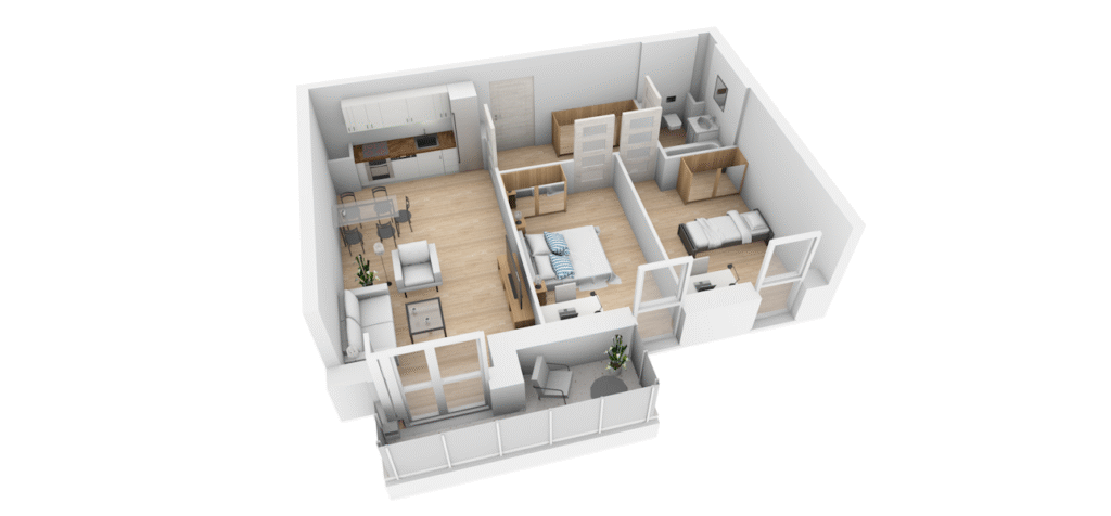 Mieszkanie M-26 to 55.59 m² możliwości na drugim piętrze – idealne dla tych, którzy szukają całkowitej prywatności i rozległych widoków nad miastem. Funkcjonalne pokoje, jasny salon połączony z nowoczesnym aneksem kuchennym oraz przestronny balkon, gdzie poranną kawę wypijesz, ciesząc się zakamarkami miasta, a wieczory spędzisz na obserwowaniu zachodzącego słońca w towarzystwie bliskich osób.