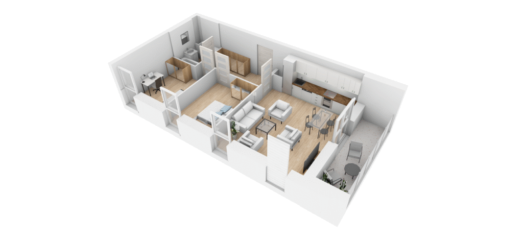 Mieszkanie M-34 to 56.87 m² możliwości na drugim piętrze – idealne dla tych, którzy szukają całkowitej prywatności i rozległych widoków nad miastem. Funkcjonalne pokoje, jasny salon połączony z nowoczesnym aneksem kuchennym oraz przestronny balkon, gdzie poranną kawę wypijesz, ciesząc się zakamarkami miasta, a wieczory spędzisz na obserwowaniu zachodzącego słońca w towarzystwie bliskich osób.