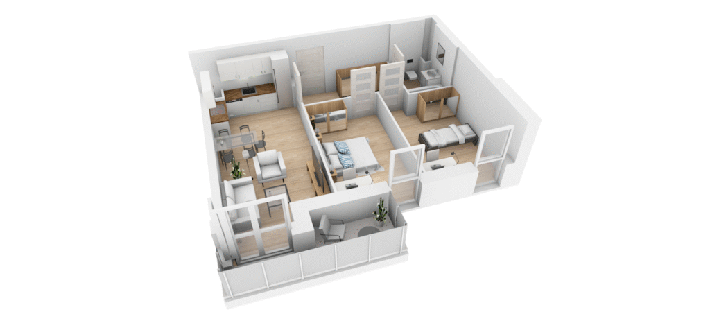 Mieszkanie M-51 to 52,49 m² możliwości na czwartym, ostatnim piętrze – idealne dla tych, którzy pragną poczuć się właścicielami dachu świata. Funkcjonalne pokoje, jasny salon połączony z nowoczesnym aneksem kuchennym oraz ekskluzywny balkon tuż pod niebem, gdzie poranną kawę wypijesz bez żadnych przeszkód, obserwując horyzont sięgający aż po nieskończoność, a wieczory spędzisz pod gwiezdnym baldachimem – to przestrzeń dla tych z wizją.