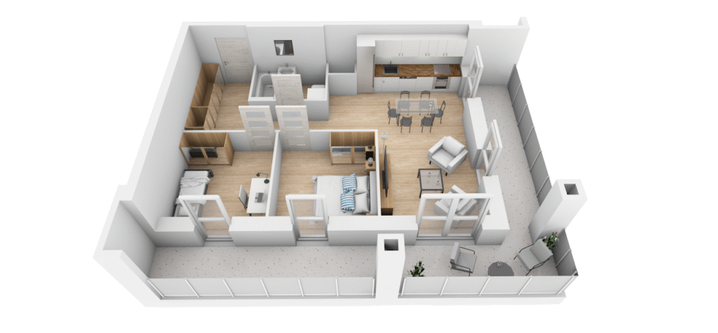 Mieszkanie M-534 to 53.08 m² możliwości na czwartym, ostatnim piętrze – idealne dla tych, którzy pragną poczuć się właścicielami dachu świata. Funkcjonalne pokoje, jasny salon połączony z nowoczesnym aneksem kuchennym oraz ekskluzywny balkon tuż pod niebem, gdzie poranną kawę wypijesz bez żadnych przeszkód, obserwując horyzont sięgający aż po nieskończoność, a wieczory spędzisz pod gwiezdnym baldachimem – to przestrzeń dla tych z wizją.