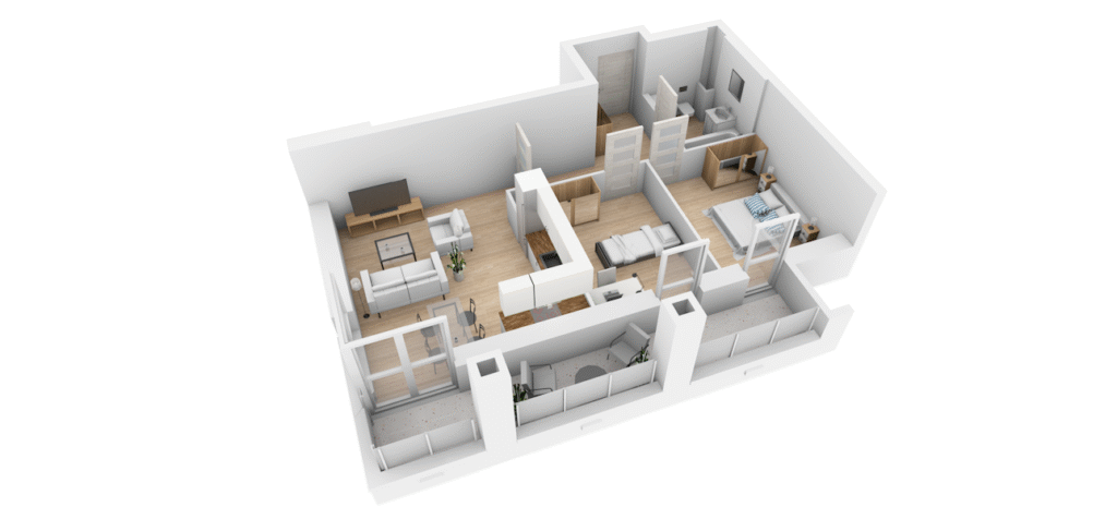 Mieszkanie M-62 to 55.00 m² możliwości na czwartym, ostatnim piętrze – idealne dla tych, którzy pragną poczuć się właścicielami dachu świata. Funkcjonalne pokoje, jasny salon połączony z nowoczesnym aneksem kuchennym oraz ekskluzywny balkon tuż pod niebem, gdzie poranną kawę wypijesz bez żadnych przeszkód, obserwując horyzont sięgający aż po nieskończoność, a wieczory spędzisz pod gwiezdnym baldachimem – to przestrzeń dla tych z wizją.